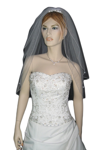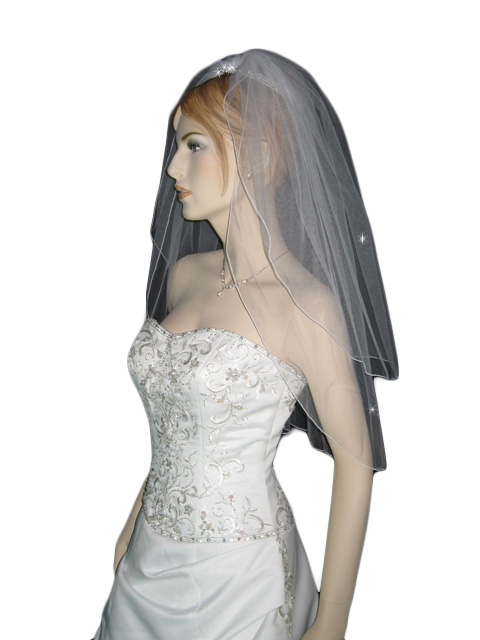 Please specify your question about 2 Tier Elbow Length Veil (NEW $18.99) Wedding Bridal Rhinestones Pencil Edge (vsh105wt):