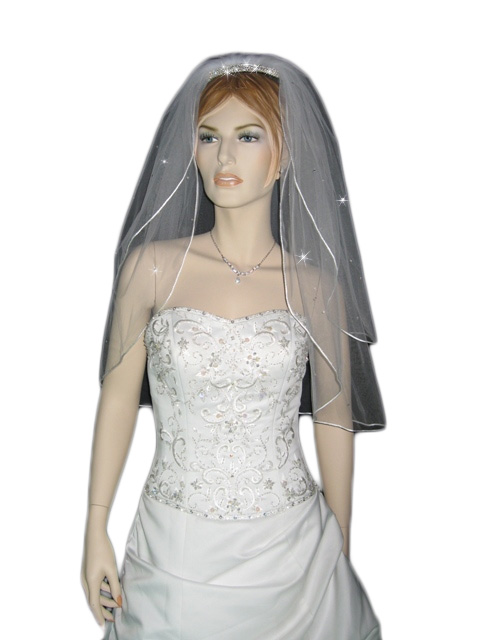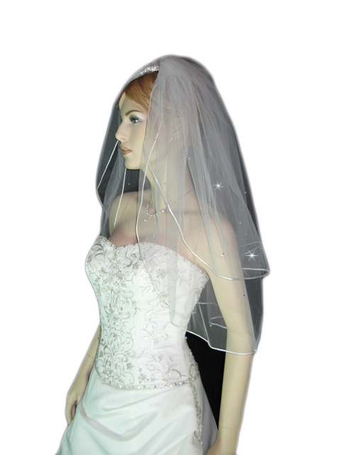 Please specify your question about 2 Tier Swarovski Elbow Length Veil (NEW $24.99) Wedding Bridal Crystal Rhinestones Rat-tail (vsh114wt):